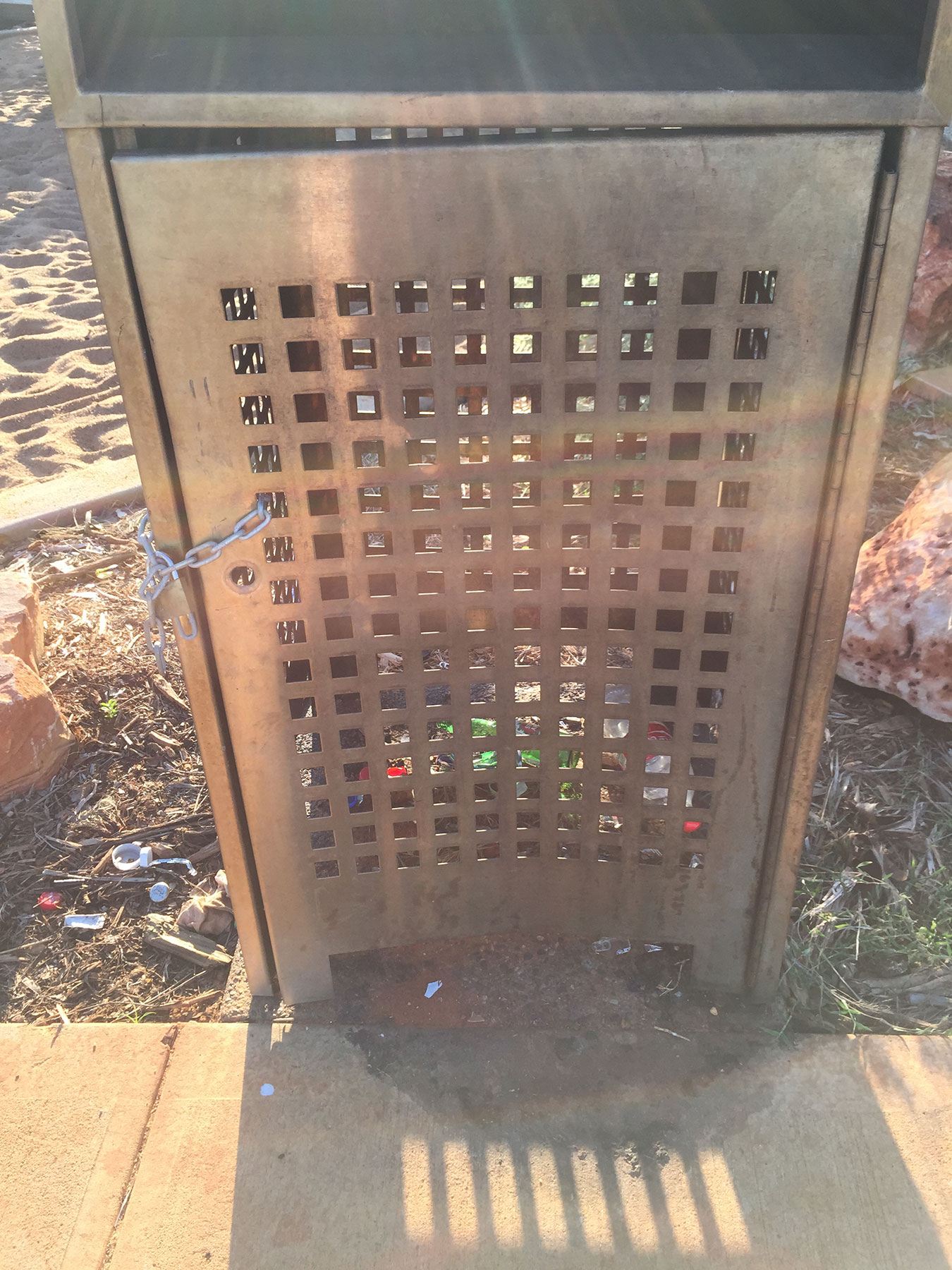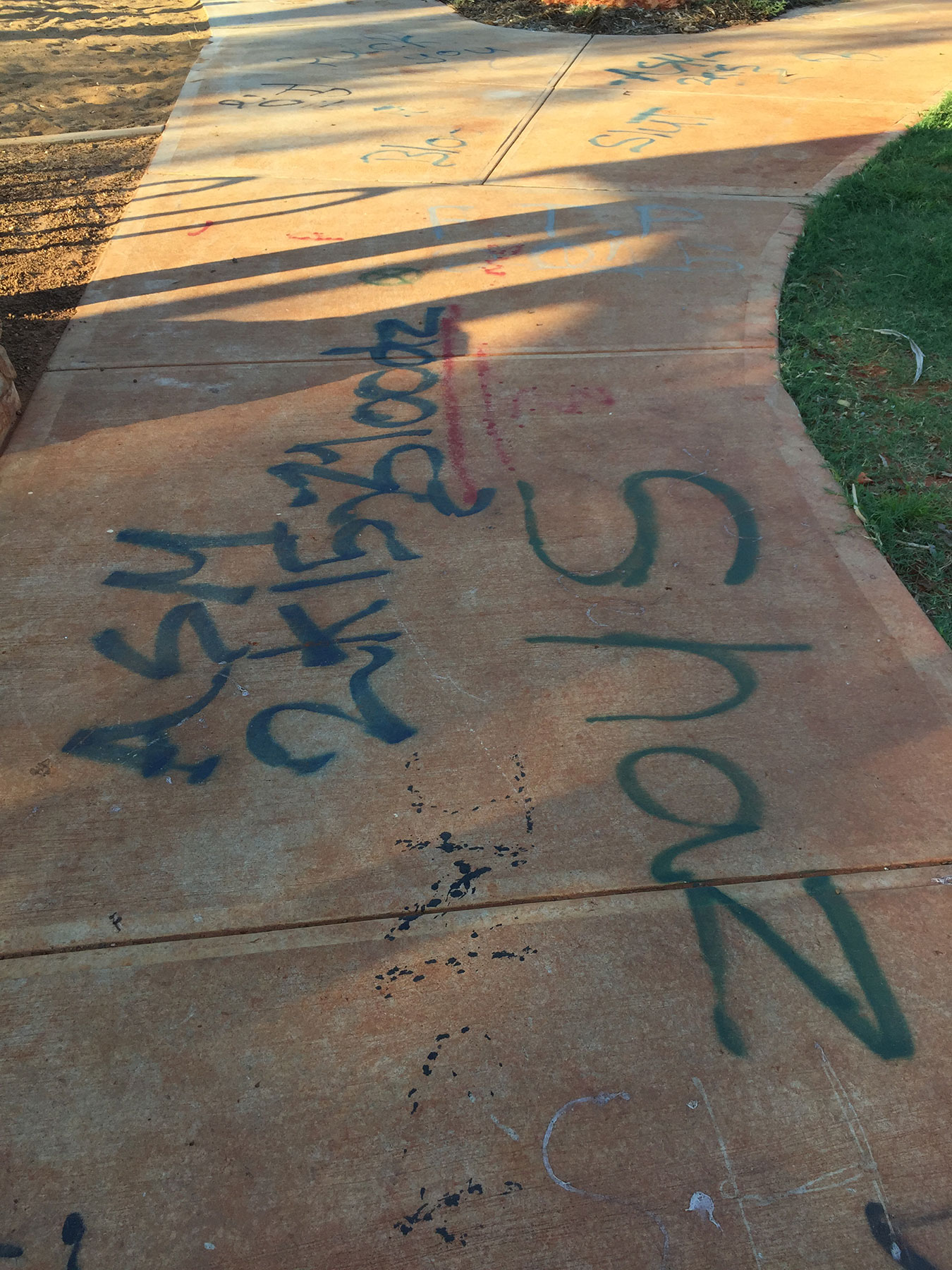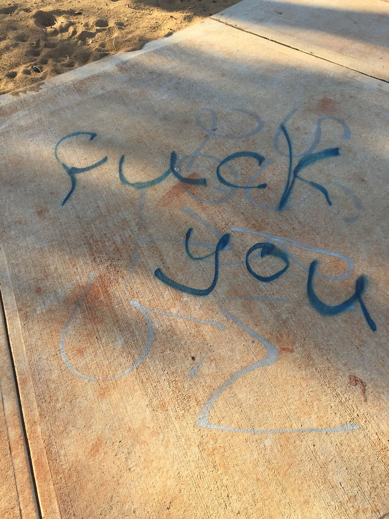 As you can see from these photos, there is grafitti everywhere, there are used condoms littered everywhere, the slide has been burnt to the ground and in the past few months over 5 used needles have been found buried in the sand.